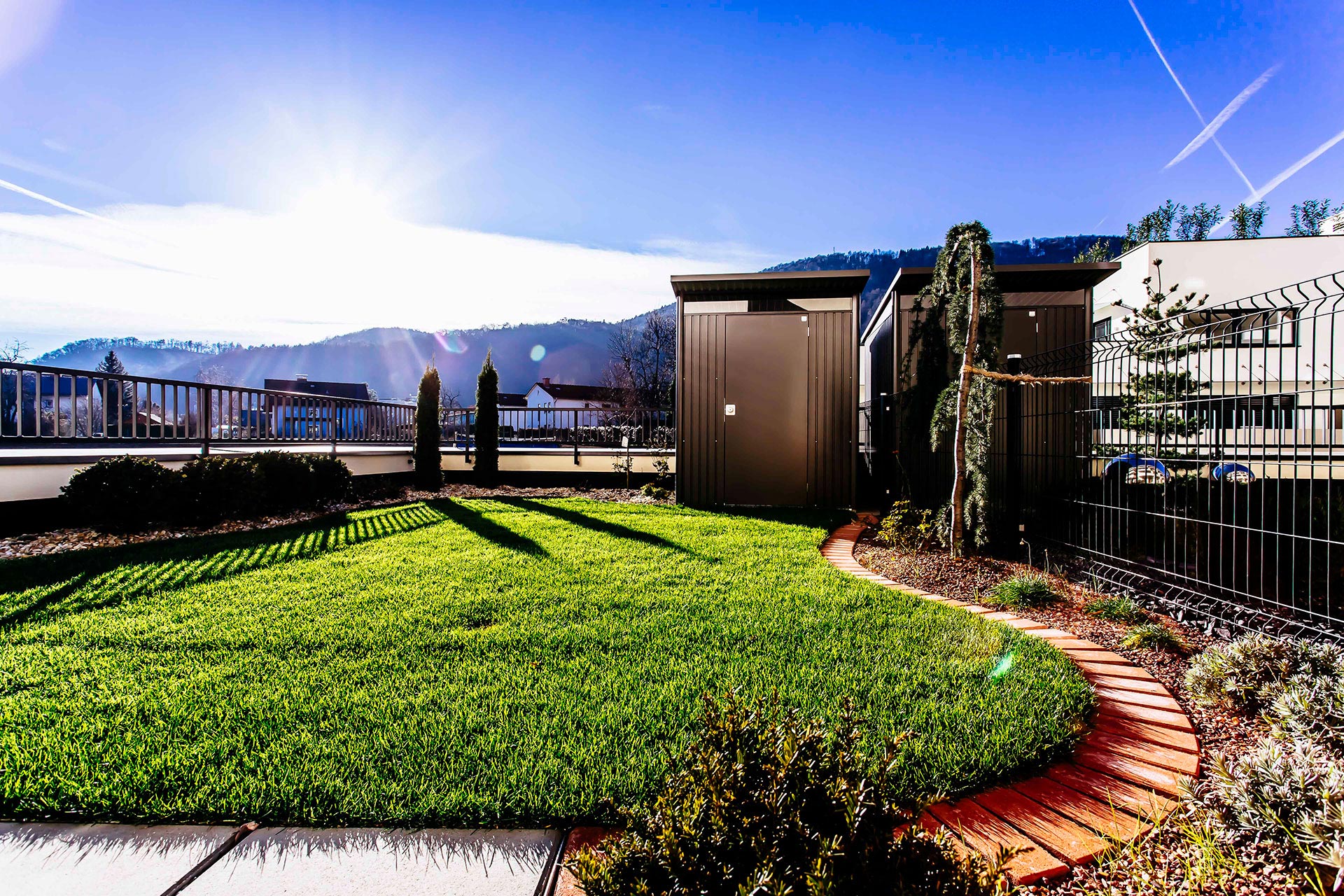 The Wellness area with indoor pool and sauna can be reached via a curved staircase through the garden.