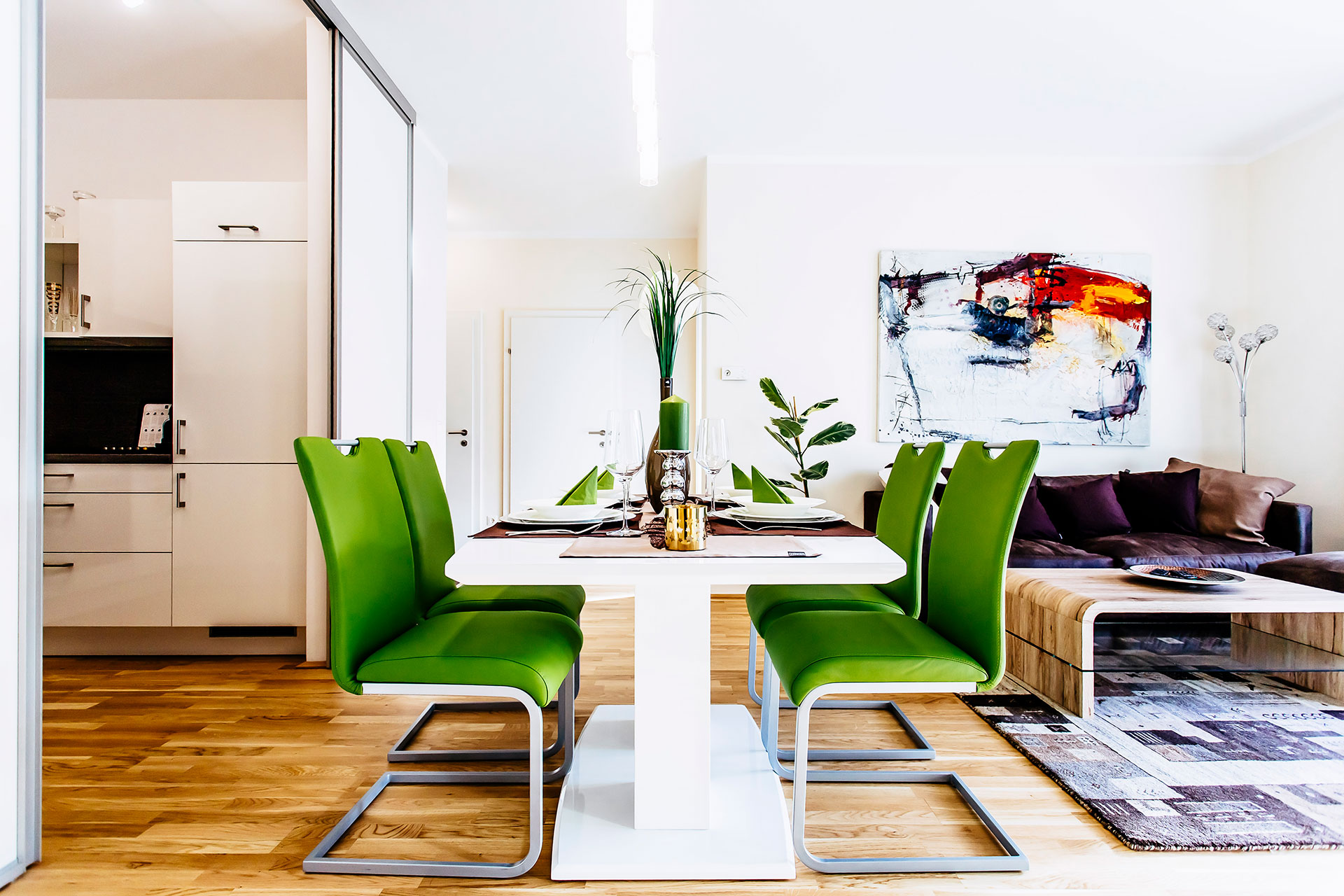In the newly designed dining room there is also a comfortable sofa bed, so that a total of up to three people can be accommodated.